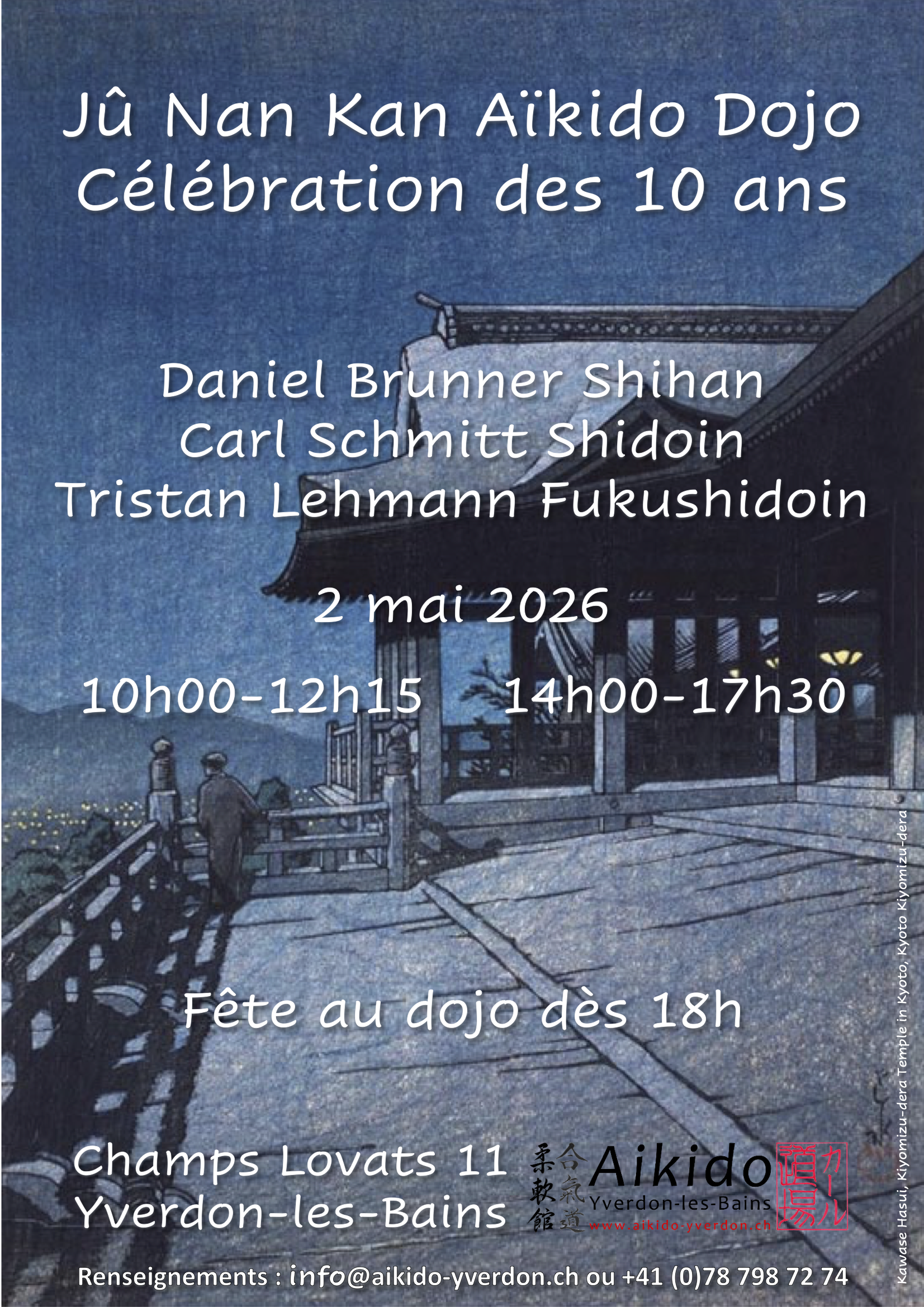 Le Ju-Nan-Kan Aikido Dojo Yverdon a 10 ans cette année. Pour fêter cet anniversaire je vous propose un stage avec :